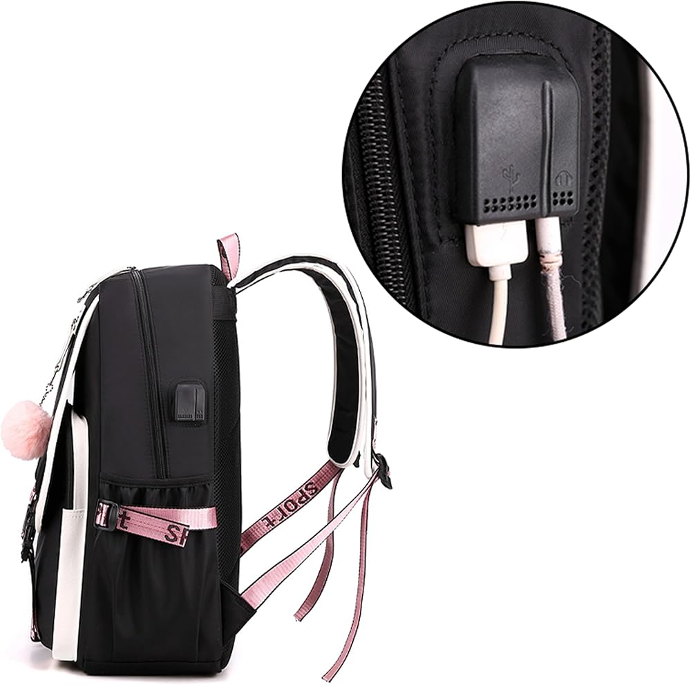 Features: Double zipper main compartment, adjustable and padded shoulder straps, thick and durable fabric. The 2 side pockets with compression straps on both sides of the backpack fit water bottles or umbrellas. With slots and USB extension cables and headphones.