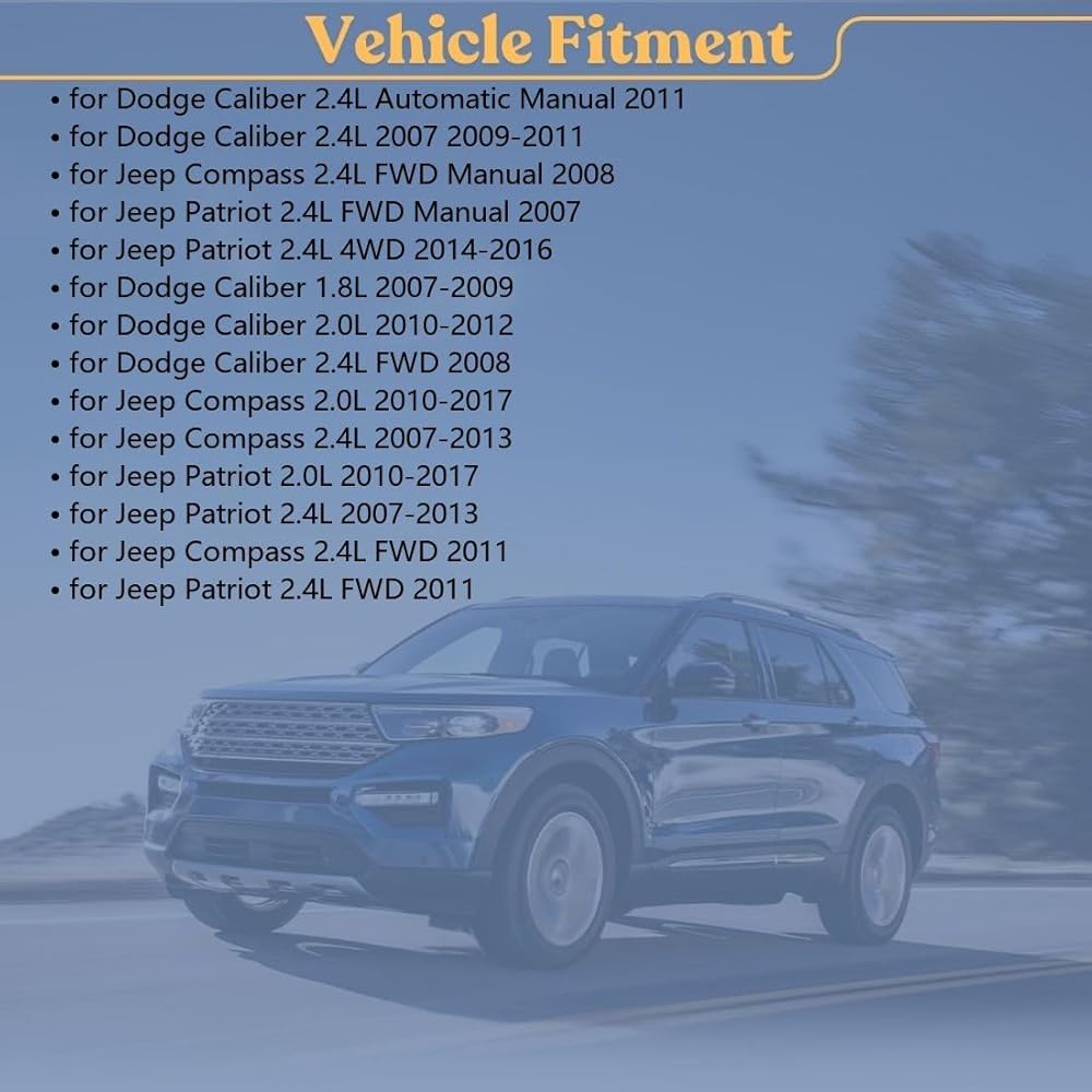Vehicle Fitment: CV Axles Front Left and Right CV Axel Constant Velocity Half Shaft for Dodge Caliber 2.4L Automatic Manual 2011, for Dodge Caliber 2.4L 2007 2009-2011, for Jeep Compass 2.4L FWD Manual 2008, for Jeep Patriot 2.4L FWD Manual 2007, for Jeep Patriot 2.4L 4WD 2014-2016, for Dodge Caliber 1.8L 2007-2009, for Dodge Caliber 2.0L 2010-2012, for Dodge Caliber 2.4L FWD 2008, for Jeep Compass 2.0L 2010-2017, for Jeep Compass 2.4L 2007-2013
