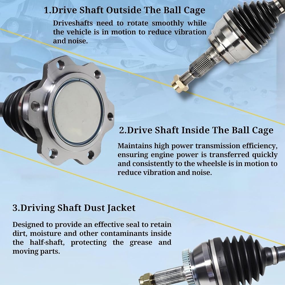 Reliable and Long-lasting: Our CV axles half shafts are made of high-quality materials, tested rigorously for durability and dependability, can withstand high loads for a long time, reduce wear and tear and malfunction like clicking noises
