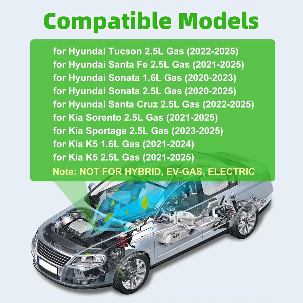 Fit for Hyundai Tucson 2.5L Gas 2022-2025, Santa Fe 2.5L Gas 2021-2025, Sonata 1.6L Gas 2020-2023, Sonata 2.5L Gas 2020-2025, Santa Cruz 2.5L Gas 2022-2025. Note: NOT FOR HYBRID, EV-GAS, ELECTRIC