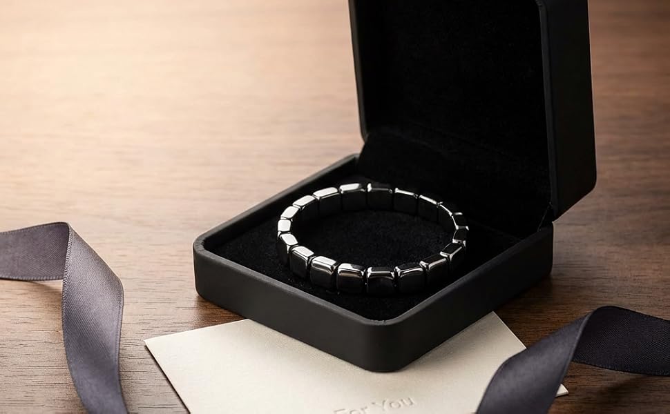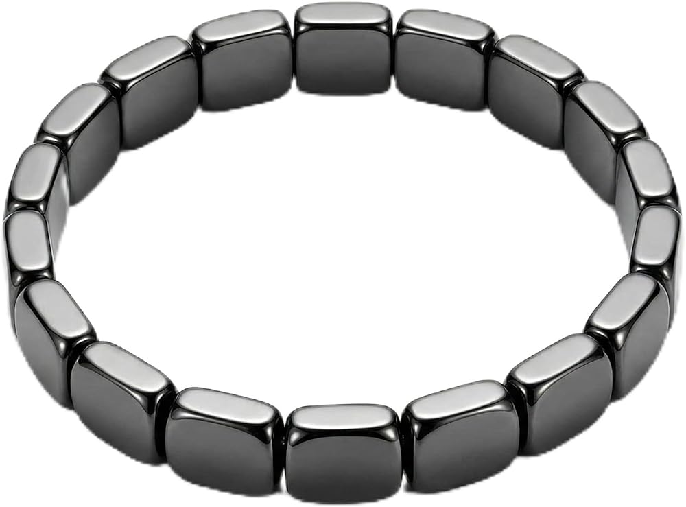 PREMIUM NATURAL STONE BEADS - Expertly crafted with high-quality, polished black hematite. These rectangular beads provide a unique, masculine aesthetic compared to standard round jewelry.