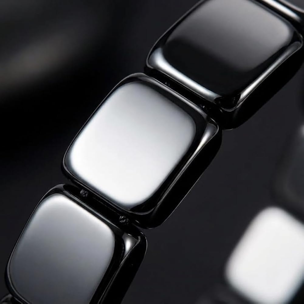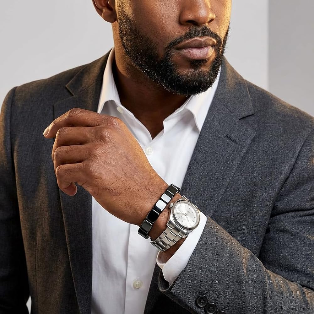 MASCULINE MINIMALIST DESIGN - The sleek, glossy black finish and geometric block structure make this a versatile accessory that complements watches, suits, or casual fitness attire.