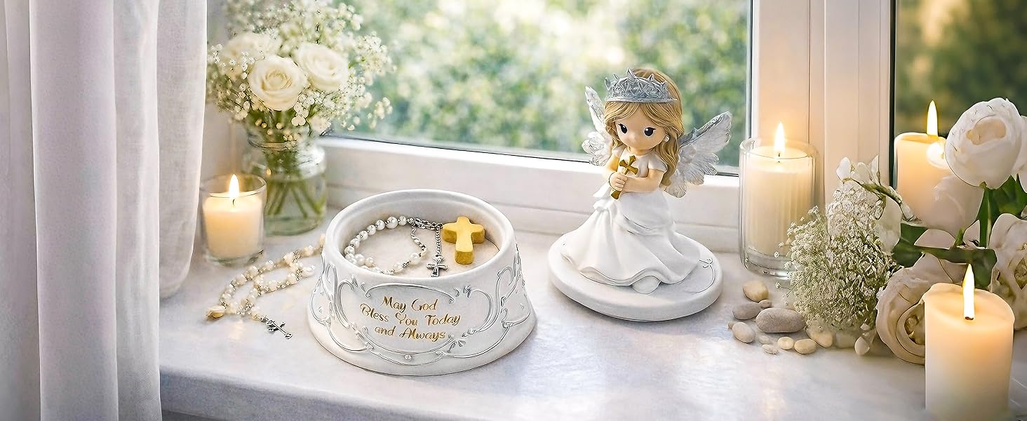 【3-in-1 Christian Gift】Perfect for first communion gifts for girls, baptism gifts for girls, and confirmation gifts for teen girls. This angel figurine represents protection and blessings, making it a meaningful keepsake for her spiritual milestones.