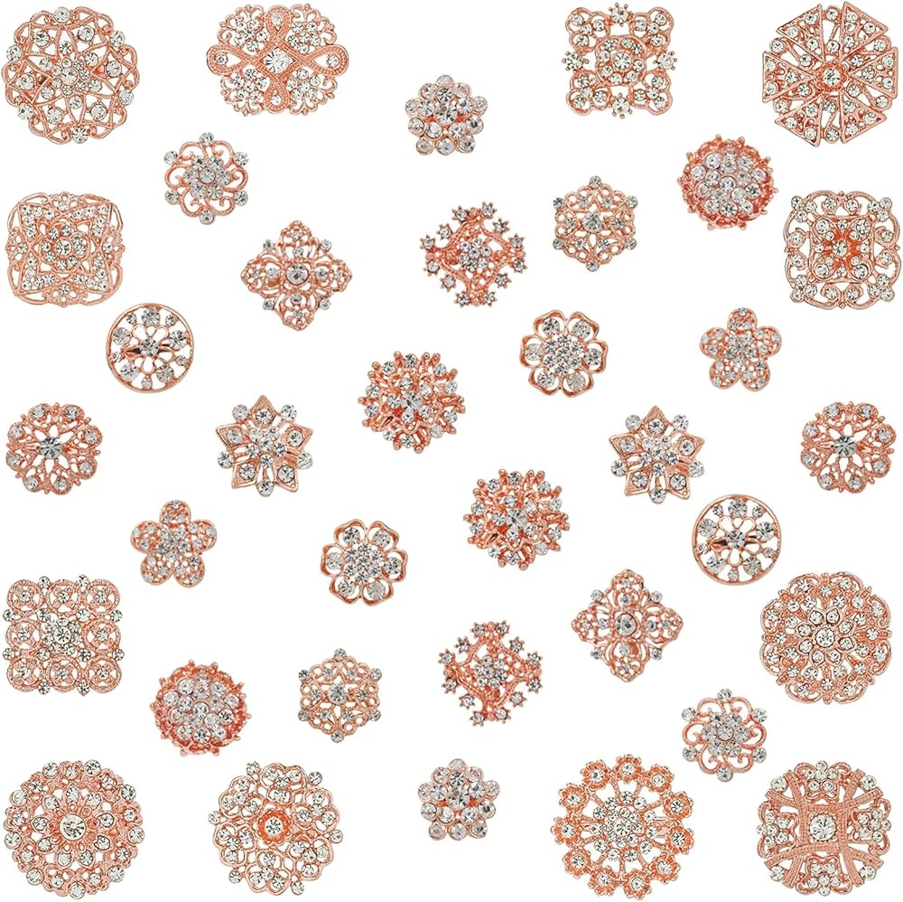 Quantity: This women brooch set includes 12pcsmedium size brooches and 24pcs small size brooch, each brooch adorned with sparkling crystal rhinestones that catch the light beautifully, adding a touch of elegance to your outfit.
