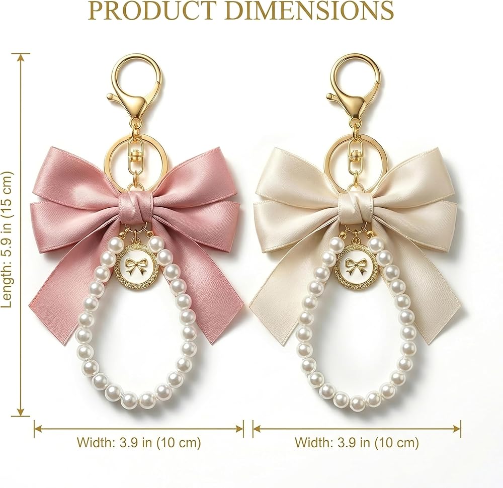 Y2K Keychain Design: 4.7-inch elegant lace bowknot charm with glossy pearls, lightweight at 0.045 lbs, perfect for adding a Y2K aesthetic to keys, bags, or cute purse accessories.