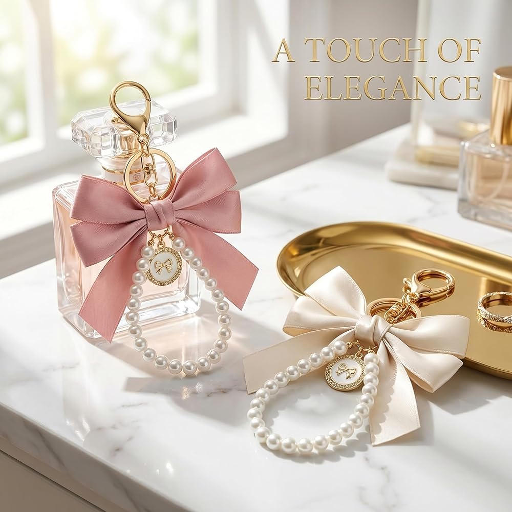 Coquette Aesthetic Appeal: Soft velvet bowknot and pearl accents create a romantic, feminine look, trending on TikTok and Instagram for Y2K keychain collectors.