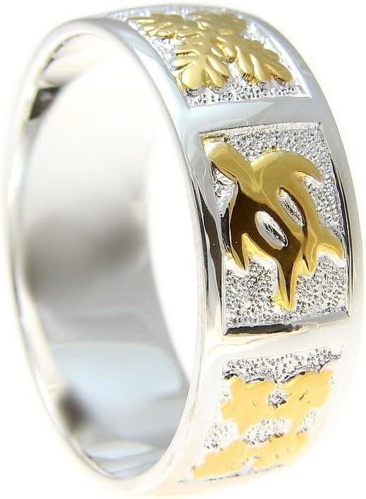 Sterling silver 925 Hawaiian 2 tone yellow gold plated honu turtle quilt 8mm band ring size 3 to 14