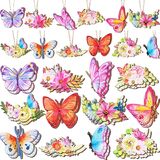 24 X Wooden Easter Ornaments for Tree
