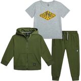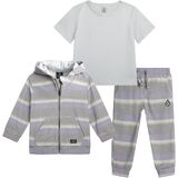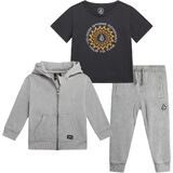 This 3-piece Volcom set is designed for everyday comfort, movement, and easy styling for growing boys. Featuring a full zip hoodie, short sleeve tee, and matching jogger sweatpants, this coordinated outfit works perfectly as baby boy clothes, toddler boy clothes, and everyday kids clothes for active little ones. Whether you're shopping for 12 month boy clothes, 18 month boy clothes, 24 month boy clothes, 2t boys clothes, 3t boy clothes, or 4t boys clothes, this versatile set delivers a reliable fit across key growth stages. Made for comfort and durability, this outfit functions as a complete baby boy outfit set, practical matching set, and comfortable jogger set that parents can depend on. The soft joggers work well as boys sweatpants, toddler sweatpants, and baby boy sweatpants, while the hoodie layers easily over a long sleeve shirt, short sleeve shirt, or classic t shirt. Worn together, it creates a cozy toddler sweatsuit, modern boys sweatsuit, or everyday tracksuit alternative for play, daycare, outings, and travel. Designed with movement in mind, the elastic waistband and ribbed cuffs provide flexibility for busy toddlers. This makes it a strong choice for families looking for a functional toddler boy jogger set, breathable activewear sets, and comfortable sweatpants for boys that hold up to daily wear. The zip-up hoodie adds convenient layering, making it comparable to other popular hoodies for boys, toddler hoodie, and boys joggers combinations. Ideal for school days, weekend wear, or lounging at home, this set transitions seamlessly between baby boy outfits, practical toddler outfits, and essential kids apparel staples. Whether styled as a 2 piece set, complete sweatpants set, or worn separately with other boys outfits, it offers versatility parents appreciate and comfort kids love. This all-in-one set simplifies dressing while delivering everyday performance across infant and toddler sizes.