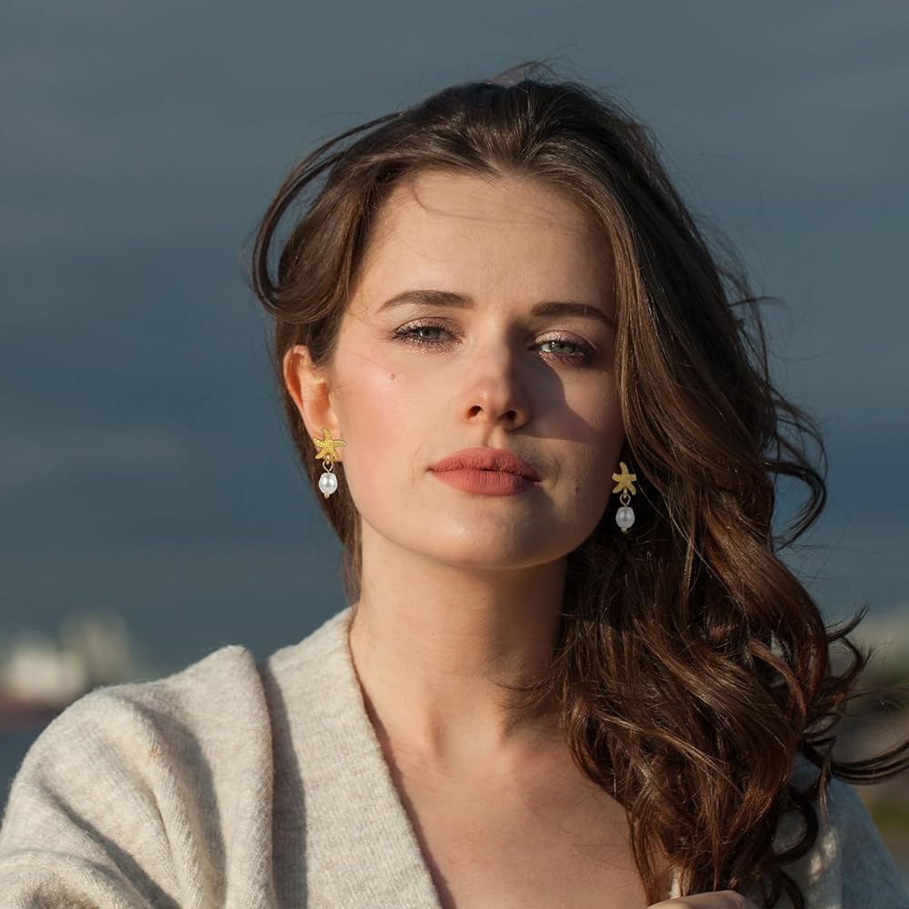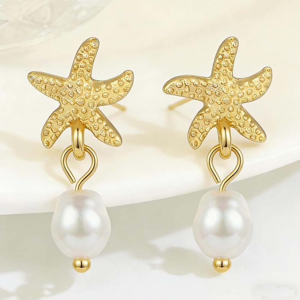 The lively gold starfish charms the eye, while the round pearl drop adds a touch of gentleness. This playful yet elegant combination brings a fresh, airy vibe to your summer outfits, and the simple design suits any style effortlessly.