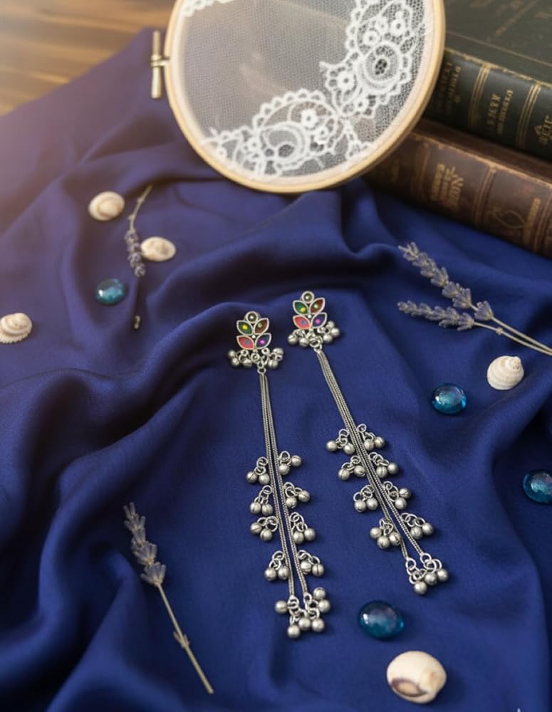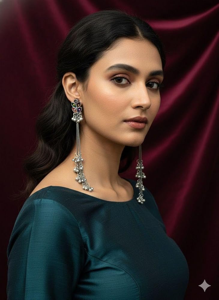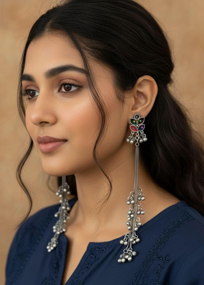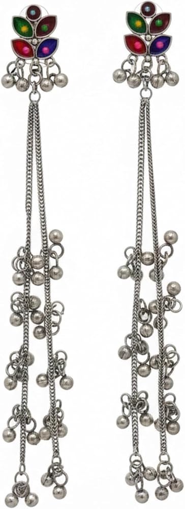 Kashmiri Afghani Indian Earrings for Women Silver Oxidised Boho Statement Long Dangle Jhumka Jhumki Earrings Jewelry