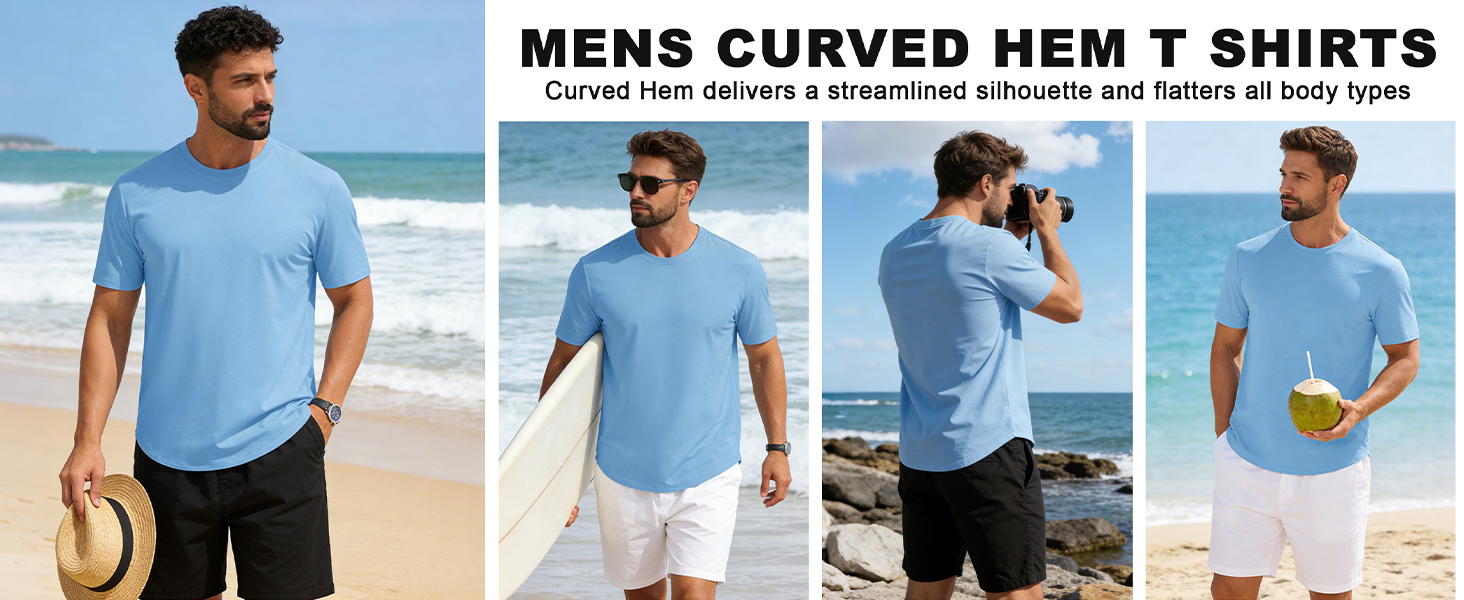 UNIQUE STYLE: Featuring a modern drop-cut curved hem, our solid mens t shirts pairs effortlessly with jeans, joggers, casual pants or layered pieces for a sharp, fashionable look, making it a versatile must-have for any wardrobe.