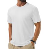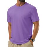 CLASSIC & VERSATILE: This sleek, solid-color basic casual tee is breathable and stretchy, making it effortless to dress up or down. Its cooling fabric effectively prevents post-sweat odor, keeping you dry and fresh all day long.
