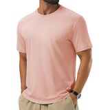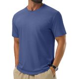 COOLING FABRIC: Our men's basic short sleeve t shirts are crafted from a premium polyester, rayon, and cotton blend, featuring a wrinkle-resistant, cooling, and lightweight finish. Reliable for daily wear, they're high-quality essentials designed for all-day summer comfort.