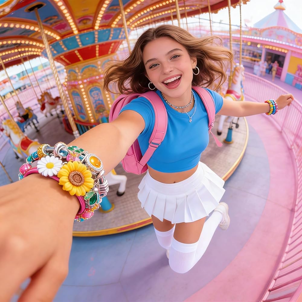 Rich Floral & Insect Charm DesignThis bracelet showcases a variety of charms including a vibrant sunflower pendant, delicate daisy, ladybug, green insect, and rhinestone star, making it a standout floral insect charm bracelet. The intricate designs infuse a natural, romantic vibe, ideal for women who love unique, nature-inspired accessories like daisy ladybug charm bracelets and sunflower pendant bracelets.