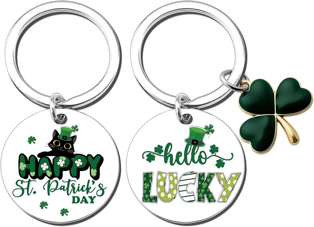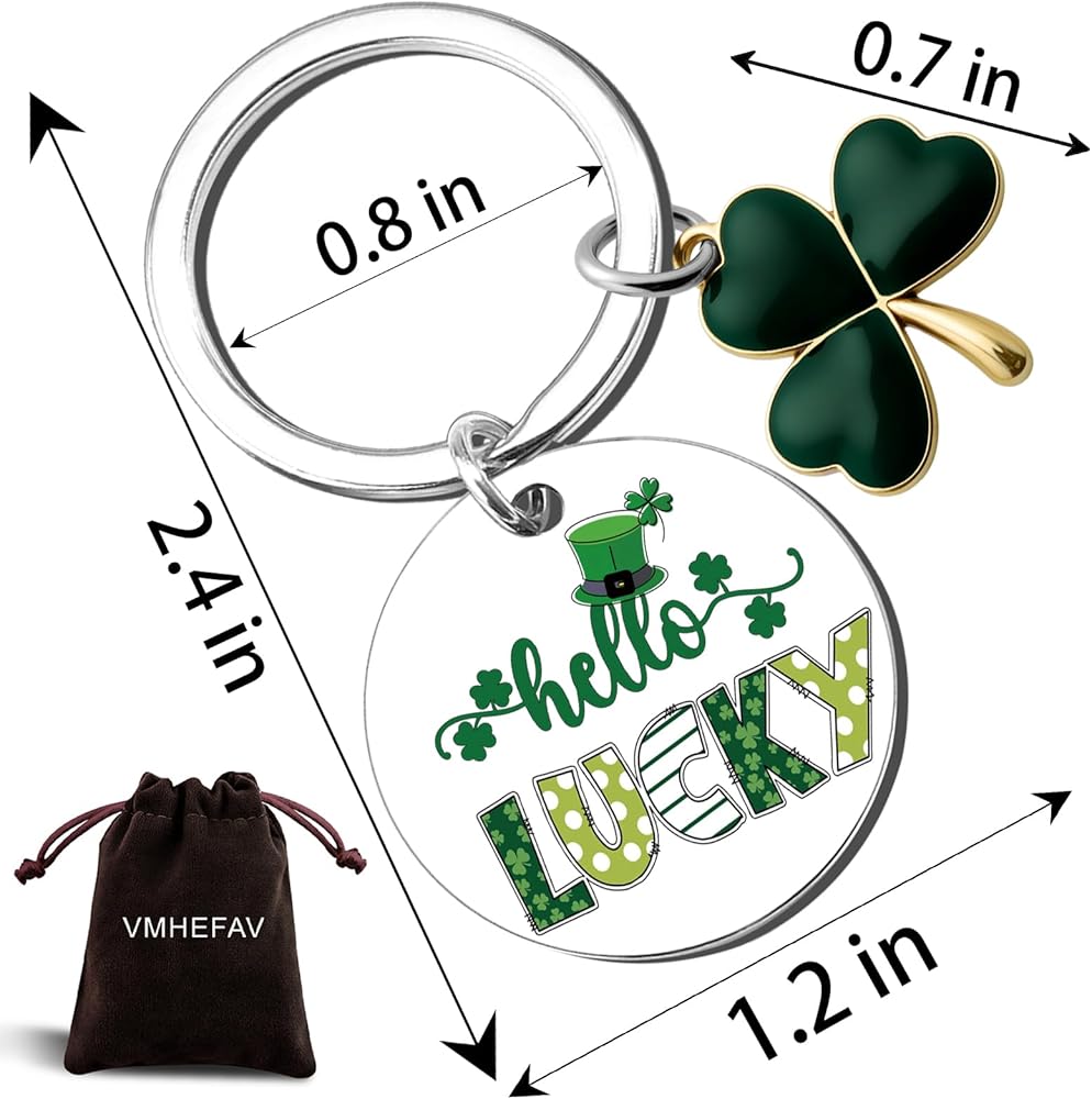 Hello Lucky Gifts For Women: Our shamrock keychain is a unique green themed gift for your best friend, sister, brother, cowoker, family, etc. The shamrock decorations will add warmth and fun to them