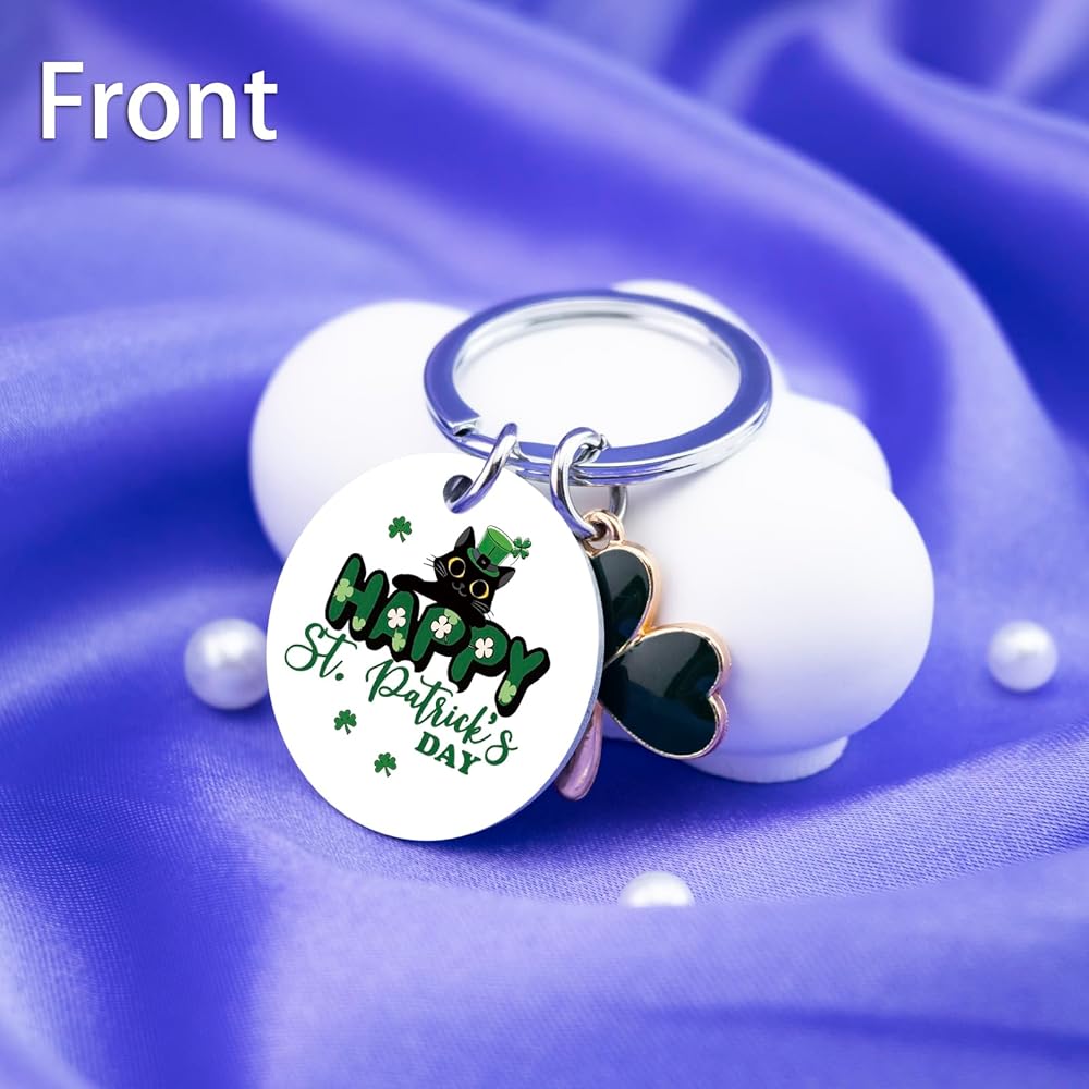 St Patricks Day Gifts: The shamrock keychain is double-sided, one side is engraved with "Happy St. Patrick's Day”and the other side is engraved with”hello lucky” adorned with shamrock patterns and a shamrock accessory, represents good luck and blessings and is the best St. Patricks Day gift