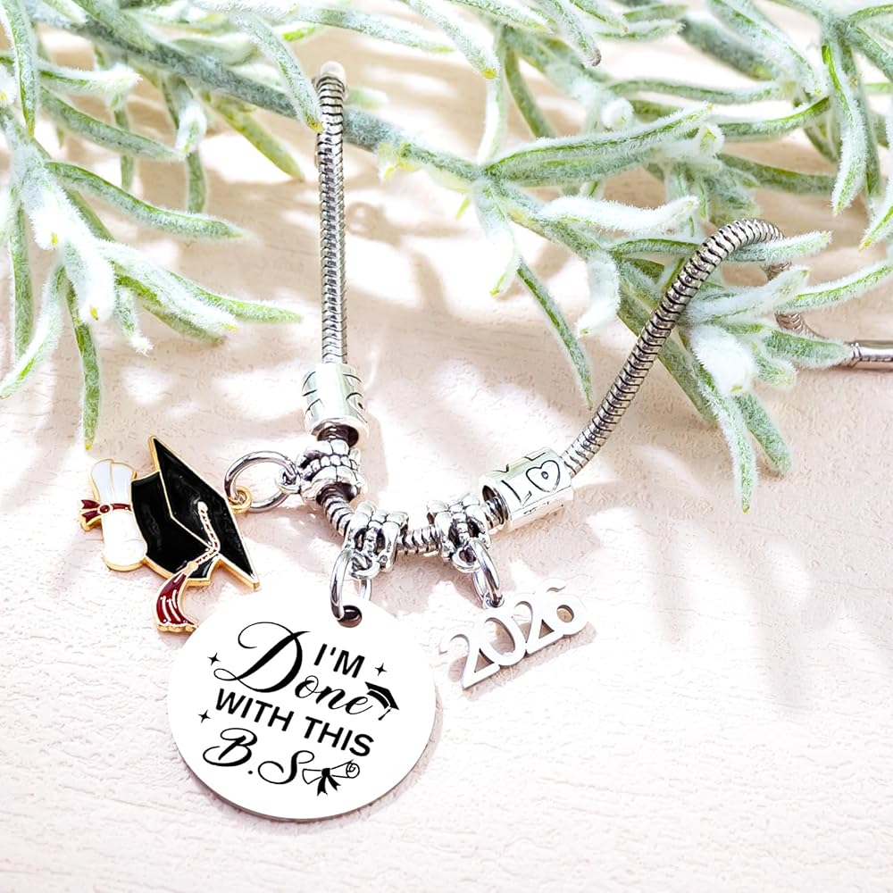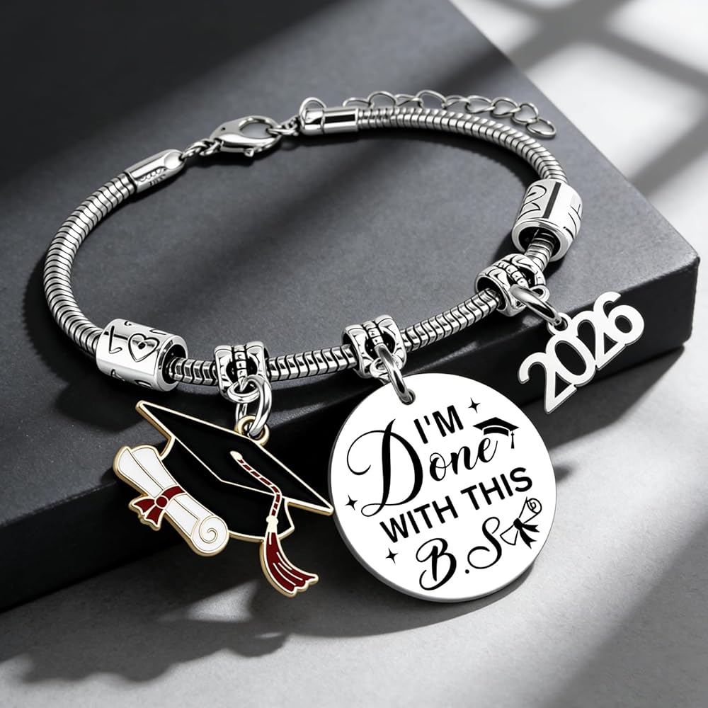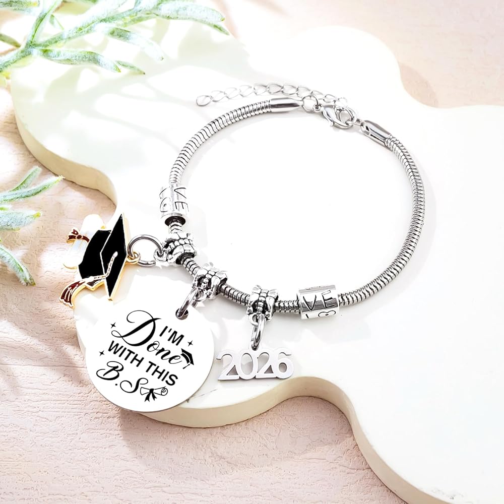 2026 Graduation Gifts for Her/Graduation Gifts for Him: Featuring playful words, charm, graduation cap pendant, and 2026 engraving, this bracelet celebrates academic pride and new beginnings. Perfect as personalized graduation gifts for her, graduation gifts for him, and a heartfelt graduation present to mark milestone achievements.