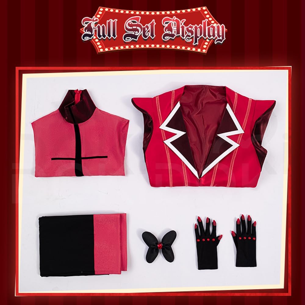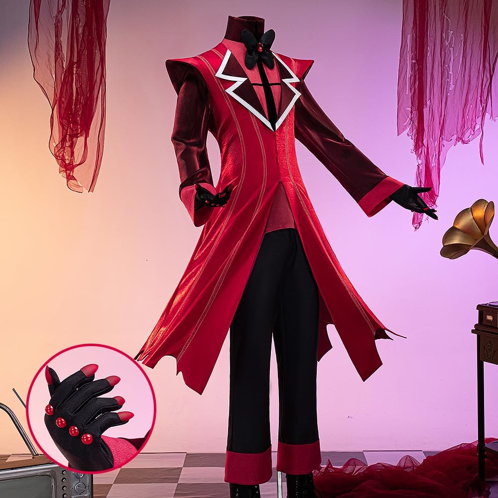 Accessories: This American anime cosplay costume comprises five pieces: a red coat, a red top, black trousers, a pair of black gloves, and a black bow tie.