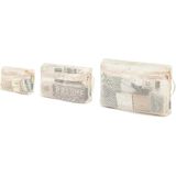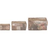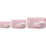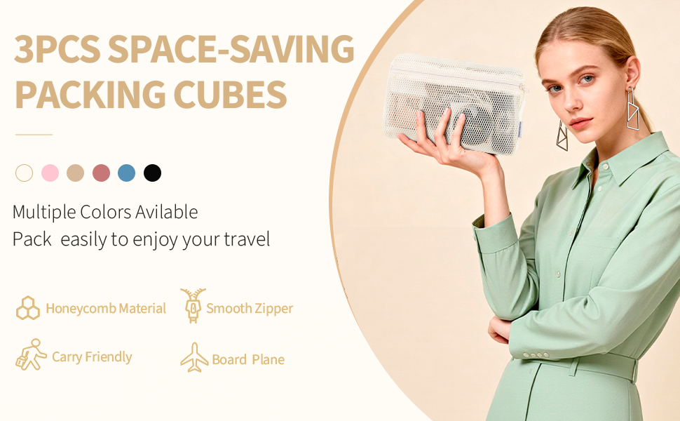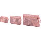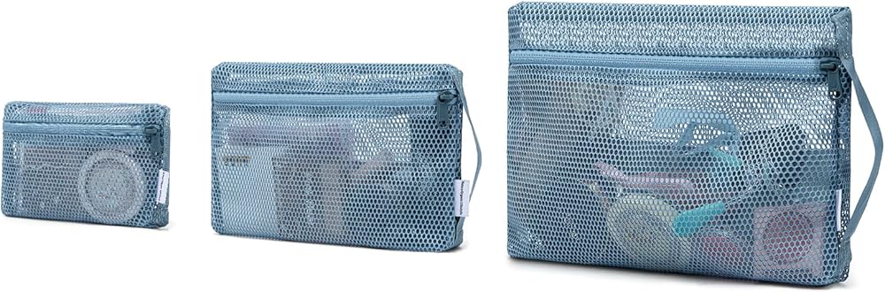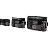 Dimension: Set of 3 with 3 sizes. Small - 6"L x 1.7"W x 4.2"H; Medium - 10"L x 2 "W x 6.7"H; Large - 13.2''L x 2 "W x 8.7"H. The clear mesh cosmetic bag can hold all your makeup essentials, toiletries and more.