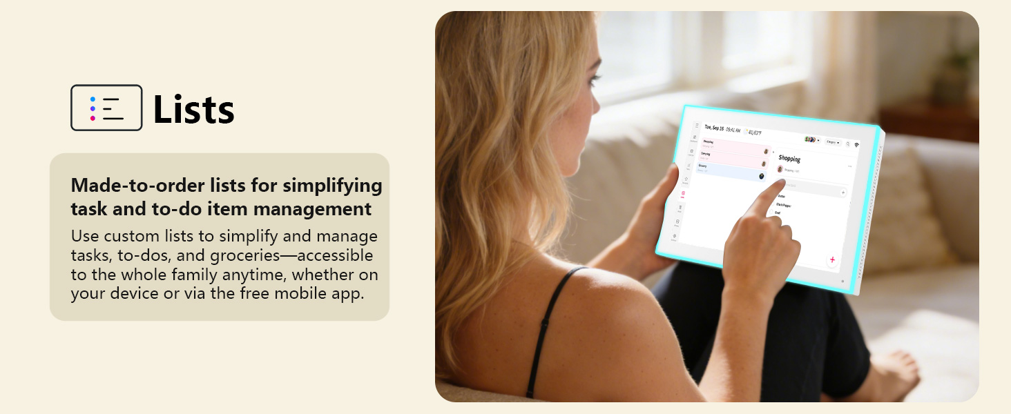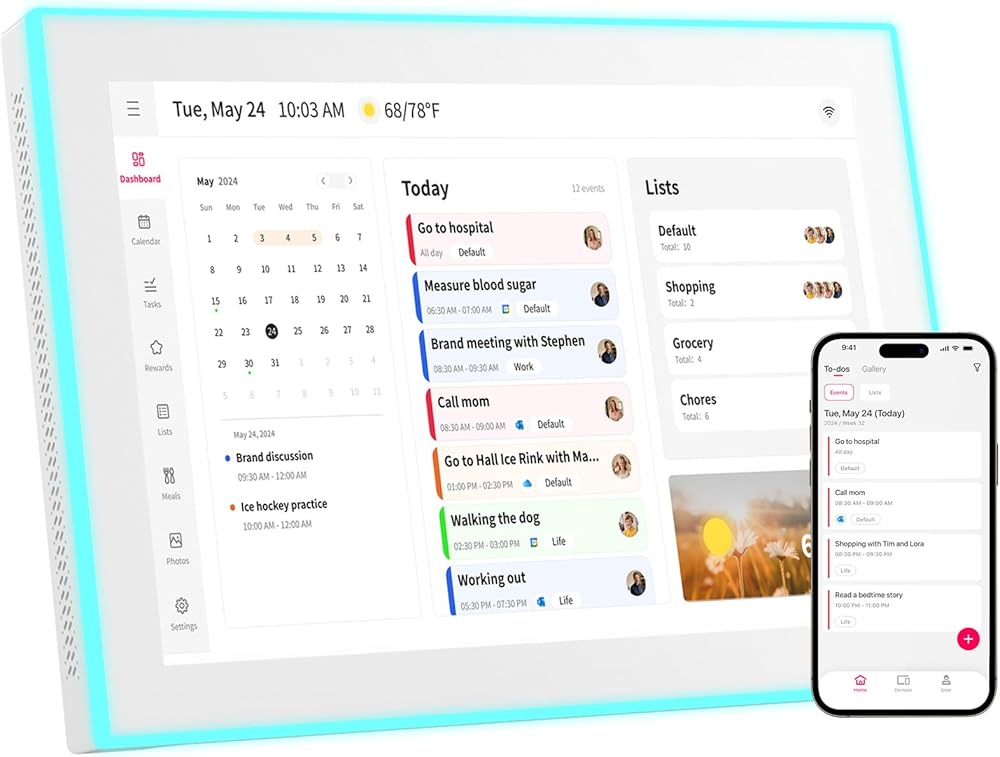 【Built-in LED Reminder】: Assign a unique LED color to each family member—blue for Dad, pink for Mom, green for kids, and more. At a glance, see who has an upcoming event based on the glowing color around the display.