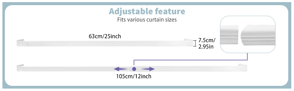 Flexible Adjustable Design: each curtain single rods piece features a telescoping range from about 22 inches to 45 inches, allowing an adaptable fit for windows, kitchen or door curtains; the curtain single rods construction offers a steady support experience