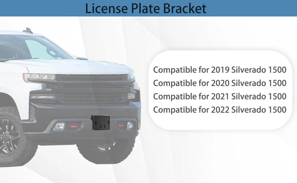 【FITMENT】: Front Bumper License Plate Bracket Compatible for Chevrolet Silverado 1500 2019 2020 2021 2022