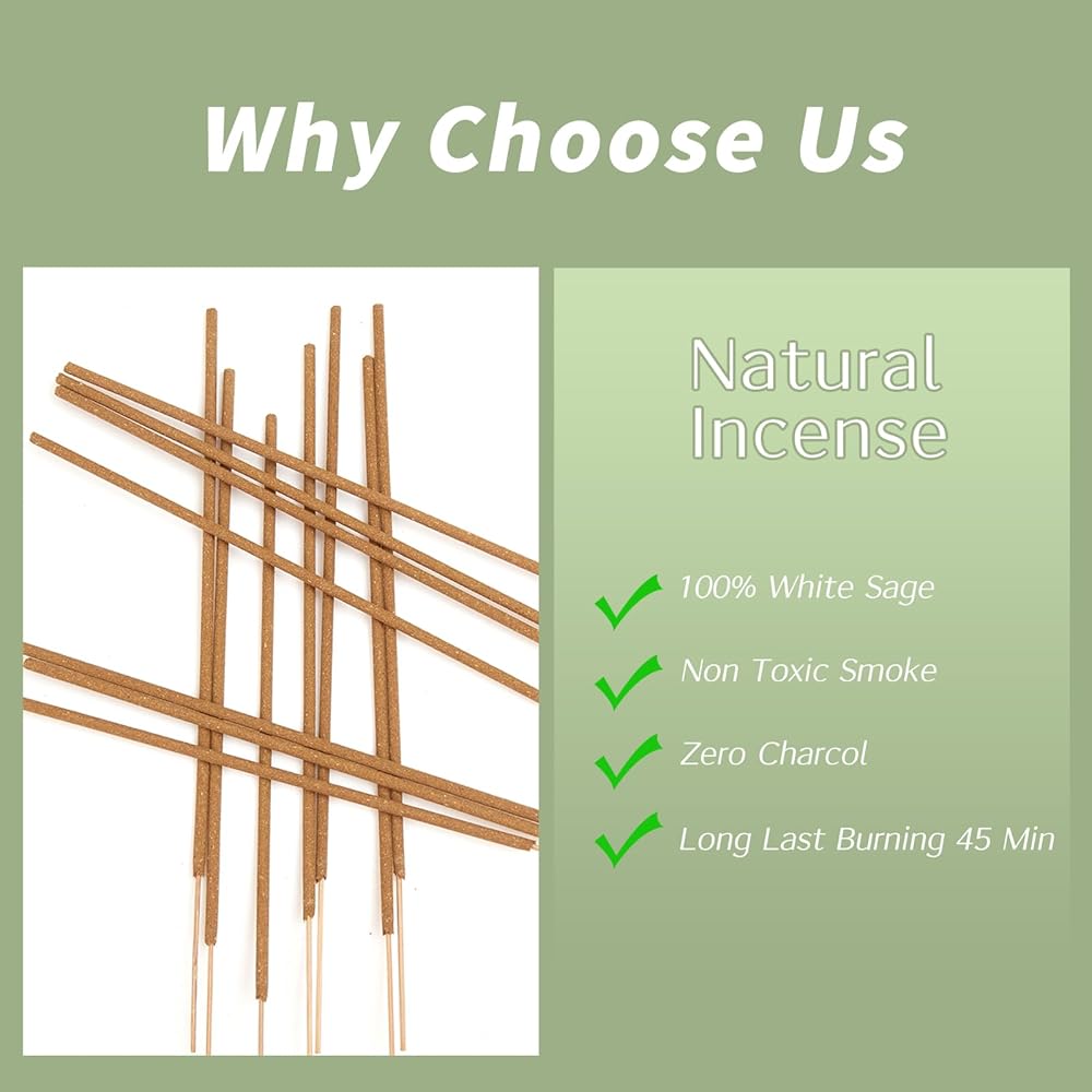 • LONG-LASTING & MULTI-PURPOSE USE: Each stick is designed for a clean, consistent burn, lasting approximately 45 minutes, The sticks will continue to smolder, releasing its cleansing smoke effortlessly