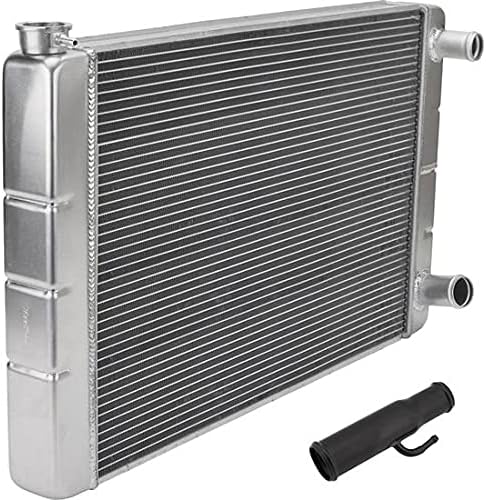 If you've decided to add modern power to your ride using an LS series engine, this LS Swap Radiator Kit is the perfect way to protect your investment and ensure proper cooling system function. We wanted to offer a solution for the budget-minded builder that also kept aesthetics in mind. Instead of an inline hose adapter with an NPT bung for you to plumb in your own fittings, which can look like junkyard parts hacked together and is susceptible to leaks, we created a unique LS Steam Vent Radiator Hose Adapter. This adapter makes quick work of several LS swap radiator hose issues with one simple piece. It features one 1.25" end to match the water pump outlet, one 1.5" end to match the upper radiator inlet, an integrated streamlined 1/4" 90° hose barb fitting for the steam line, and a black finish to blend in with radiator hoses. The combination of this adapter with one of our professional-quality aluminum racing radiators means your search for an affordable and effective LS conversion radiator solution is over. LS Steam Vent Radiator Hose Adapter Features 1.25" end - matches water pump outlet size. 1.50" end - matches upper radiator inlet size. Integrated 1/4" 90° hose barb fitting for a streamlined look. Black finish blends in with radiator hoses. This LS1 Swap Radiator Kit features our double-pass universal aluminum radiator. These high-performance radiators feature 100% all-aluminum construction. The furnace-brazed core increases durability compared to other radiators with epoxy-glued or crimped-gasket sealing methods. Two rows of 1-inch aluminum tubes allow this radiator to out-cool a similarly sized radiator with five rows of copper tubes. A rugged billet aluminum filler neck with screw-in bleed is also included. This radiator is designed for Compatible with Chevy applications with both water necks on the passenger side. Universal Aluminum Radiator Features: Passenger side upper inlet, 1.50" Passenger side lower outlet, 1