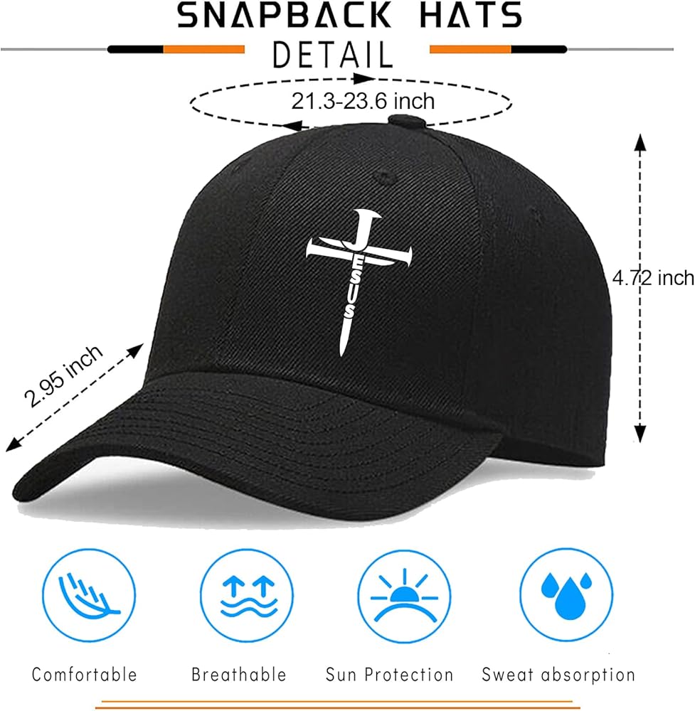 【Ideal christian gifts for every occasion】Black 3 nails snapback hats for men women caps is perfect for daily use or all the outside activities like baseball, cycling, camping, running, gym, hiking, traveling, summer beach. These jesus gifts transcend mere accessories, it is not only a fashionable accessory, but also a statement of faith. They make great gifts for mom, dad, friends, father's day, mother's day, birthdays, and christmas.