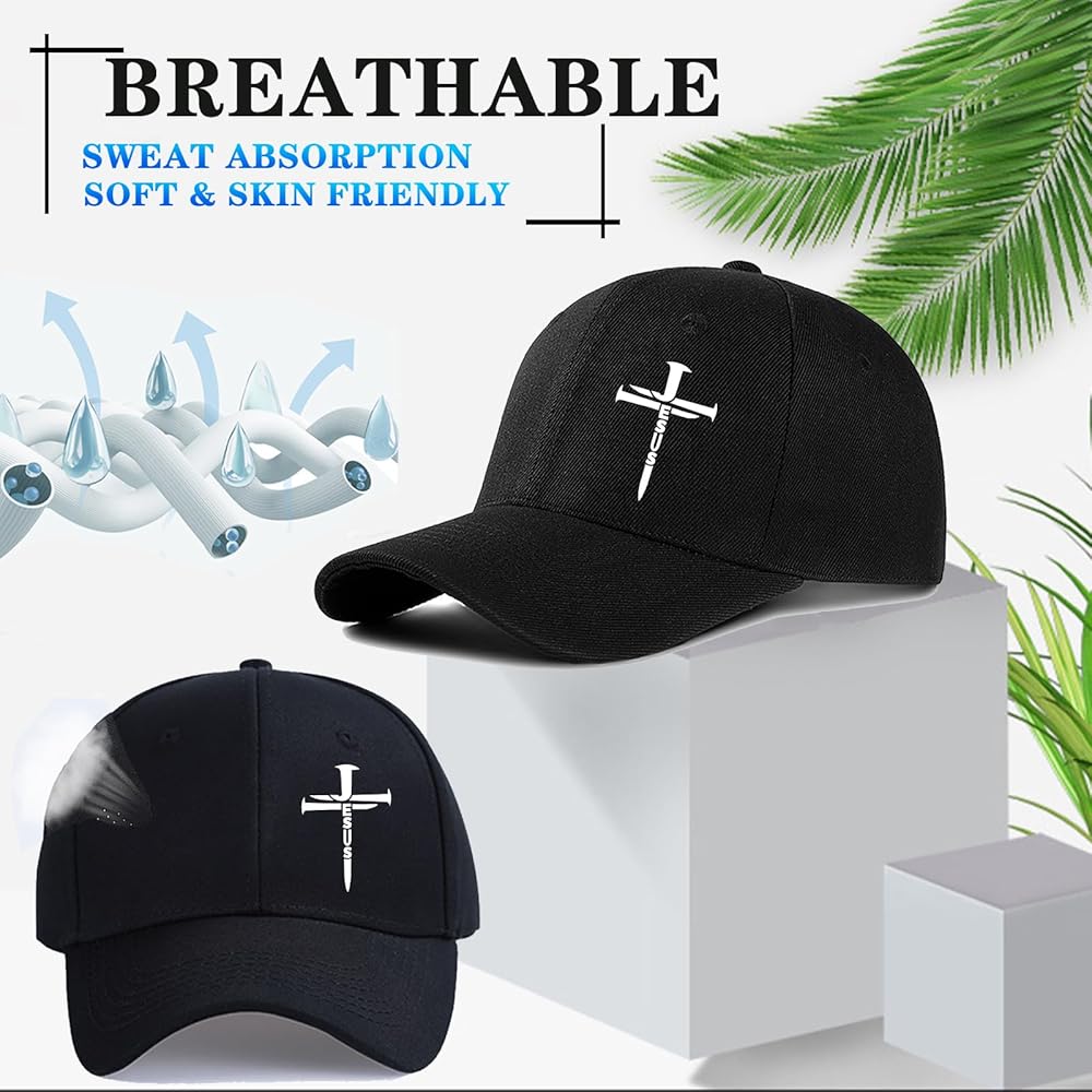 【Sweat absorption breathable&sun protection】Mens religious faith hat baseball hats feature a curved hat bill which keeps bothersome sunlight out of your eyes , ensuring that you stay cool and comfortable all day long. It also features a cotton sweatband inside, which can absorb sweat and remove moisture, six breathing hole design increases the permeability of the hat, dry quickly.