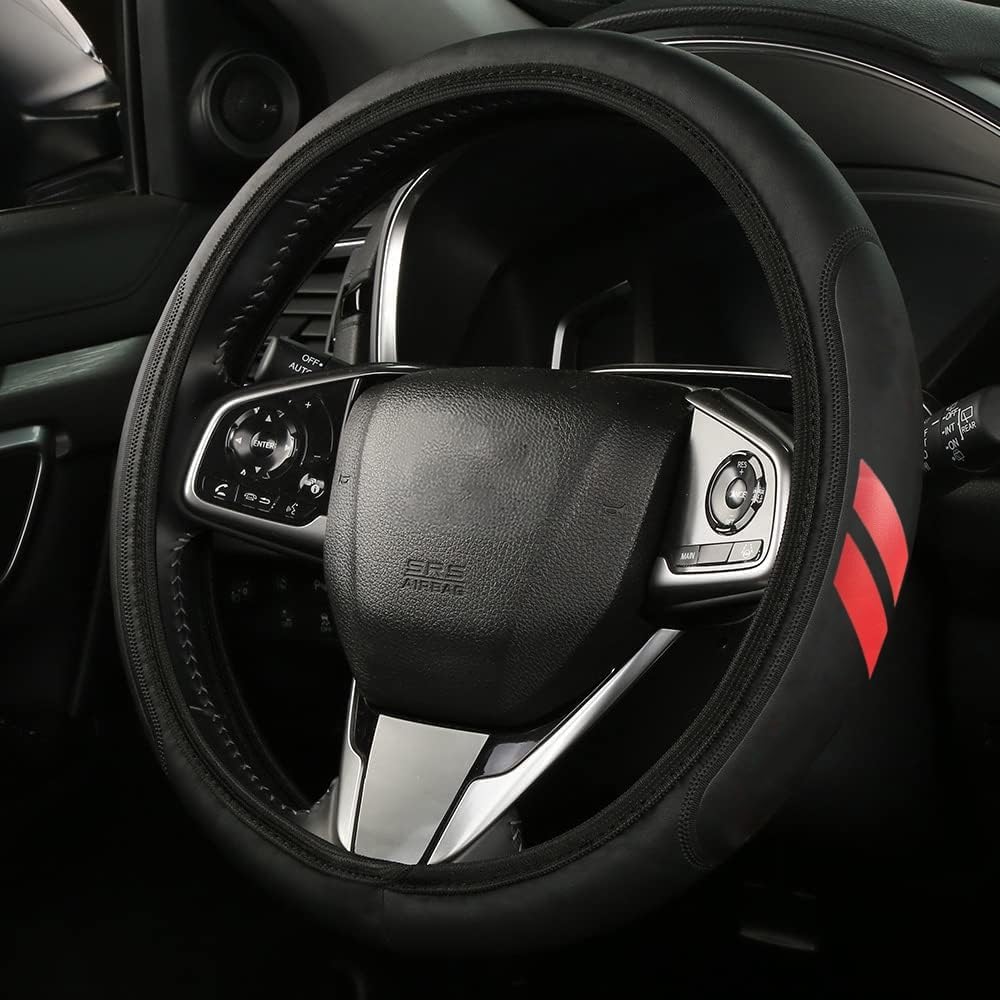 It's time to take some protective measures for your car. It is fully lined with non-slip material to ensure a safe and reliable fit. While protecting the steering wheel, it can also decorate the car and increase the grip on the steering wheel so that you can control the steering wheel more stably. The high-quality inner handle lining will not slip or smell. Breathable design increases comfort. In summer, your steering wheel will no longer be a hot press. This is the best gift for yourself, family, friends. Package Including:1x Steering Wheel Cover.