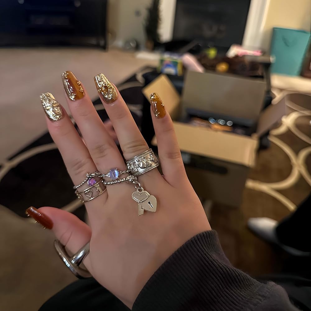 SYMBOLIC LOCK & KEY ELEMENT: This piece is more than just a ring; it's a statement. The prominent lock and key element dangling from the band symbolizes mystery, secrets, and love, making it a thoughtful gift for a special woman in your life. The intricate details of the heart charm combined with the key create a truly special and symbolic piece of jewelry