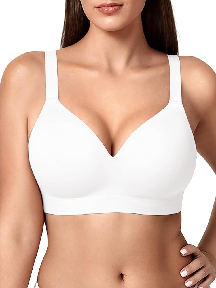 【Seamless & Invisible】The one-piece cups' double-layer design plus a seamless outer layer ensures a smooth fit, eliminating bumps, lines and bulges. It stays smooth and invisible under any clothing—from T-shirts to dresses—suitable for work, daily life, sleep, gym, or parties