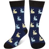 Celebrate Easter in Style: These Easter socks feature soft yellow and light blue rabbit patterns on a deep navy background, creating a playful yet classic spring look. Perfect for egg hunts, family gatherings, and holiday parties, they add festive charm and personality to any outfit.