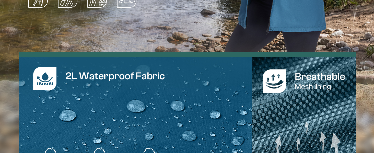 【Stay Dry】: Blocks moisture by 2.5L waterproof fabric with DWR finish, which keeps you dry in rainy day. This plus size raincoat with mesh lining minimizes skin contact, which helps sweat releasing. Meanwhile a snap storm flap add more waterproof protection when outdoor.
