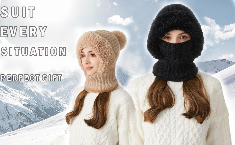 Windproof Knitted Hat: This product can be worn as a neck warmer, half mask or a full balaclava for the best cold weather protection,convenient and comfortable.