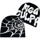 This Y2K-inspired beanie hat brings gothic edge to your everyday wardrobe with its striking graphic designs. Available in two bold patterns - an eye-catching spider web motif, or the dramatic "Mea Culpa" lettering - this knit cap adds instant street-style credibility to any outfit. Crafted from 100% acrylic yarn, the beanie features a double-layer construction that delivers superior warmth and wind protection during cold weather. The soft, comfortable material feels gentle against your skin while maintaining its shape wear after wear. Designed with a one-size-fits-most approach, this skull cap accommodates head circumferences from 20.5 to 22.8 inches. The natural elasticity of the knit ensures a snug, secure fit for larger heads while sitting comfortably loose on smaller frames. This unisex beanie works equally well for men and women, making it a versatile accessory for teenagers and adults alike. Whether you're channeling gothic vibes or embracing Y2K nostalgia, this statement piece transforms basic outfits into fashion-forward looks. Coordinate with friends by wearing matching or contrasting patterns to create a cohesive crew aesthetic. Hand wash cold and lay flat to dry to maintain the integrity of the design and fabric.
