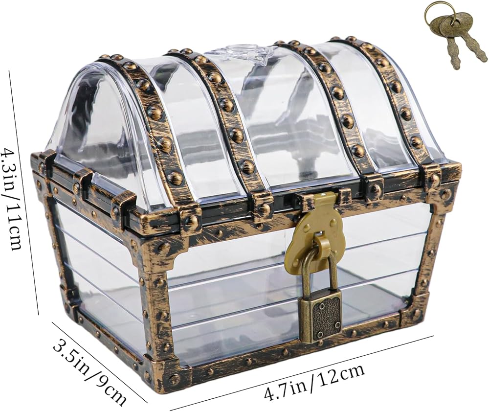 Measuring 12*9*11cm (4.7*3.5*4.3 inches), it is compact and portable, allowing kids to carry their treasures wherever they go. Whether displayed on a shelf or tucked into a backpack, this treasure chest is both functional and delightful.