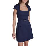 This BCBG Women's Dresses Dress is a Short Sleeve Square Neck Belted Short Stretch Dress