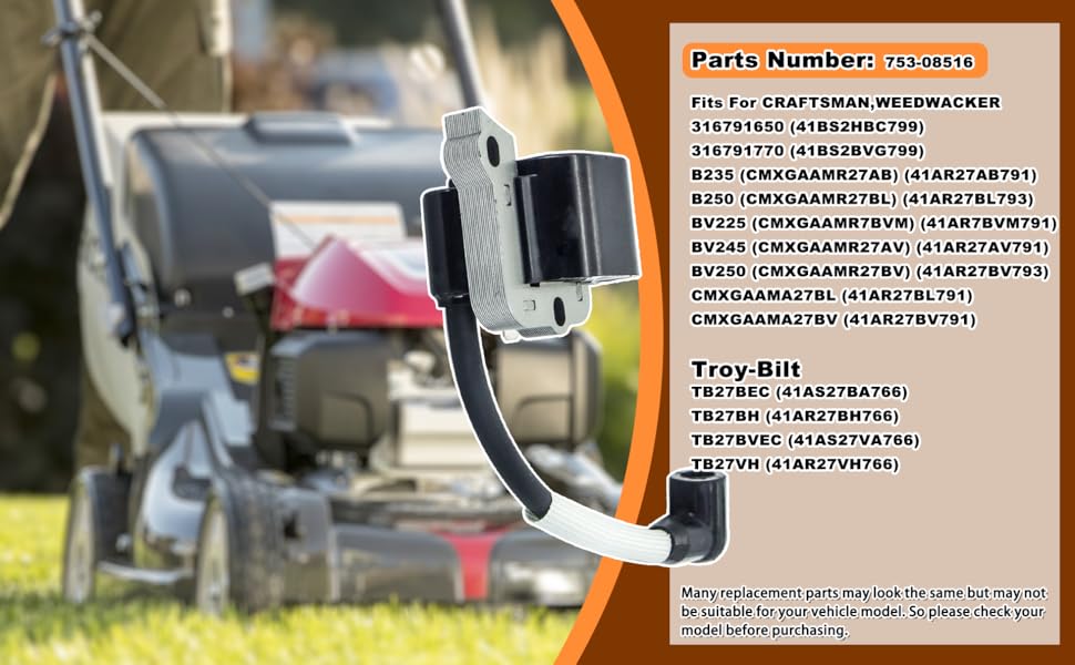 753-08516 Ignition Coil Module for Craftsman B210 B215 B235 WC205 WC210 WC215 WC2200 WS205 WS210 Blower Parts