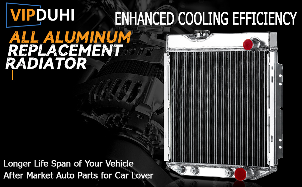 High Cooling Efficiency: VIPDUHI radiator cooling rows are spaced 3/8'' apart, giving you 25% more rows within the core, 14-16 cooling fins per inch, giving you approximately 1500 more cooling fins, provides 30% more cooling capacity