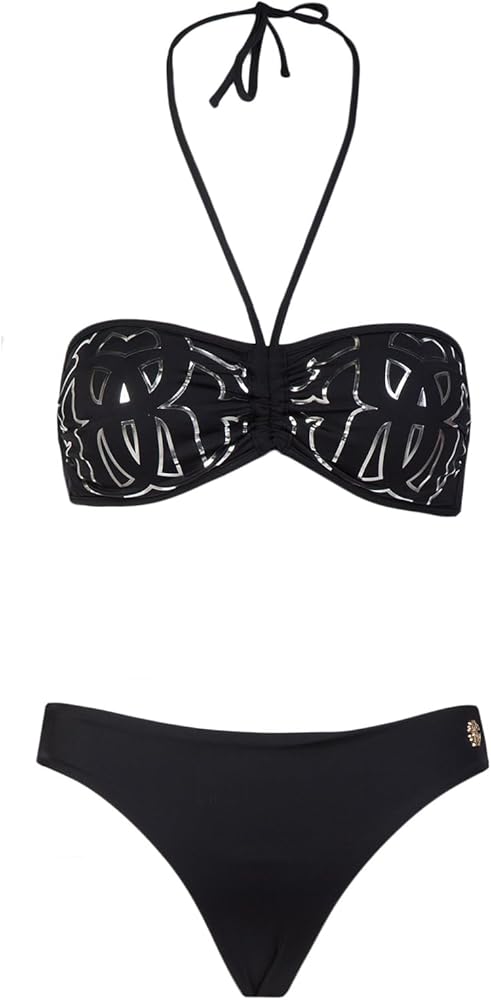 Roberto Cavalli presents a summer-ready reimagining of its iconic signature print, with this two piece bikini. The set comprises a bikini top, styled with removable padded cups for a supportive fit, alongside matching bikini bottoms, making an elevated addition to your resortwear rotation.