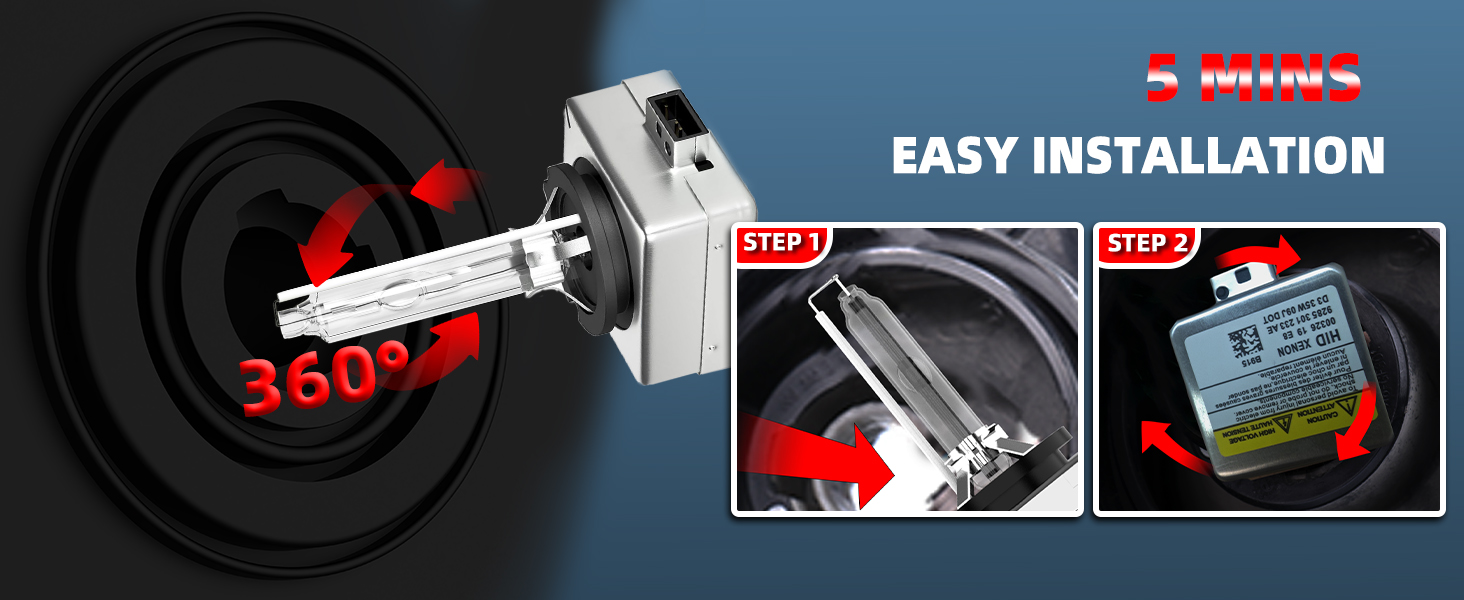 【300% Brighter Than Stock Bulbs】The D1S high performance High Low Beam is 300% super brighter than stock halogen bulb.With white color temperature of 6000K that closely resembles natural daylight.White light better reflects road signs and displays clearer road conditions.