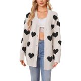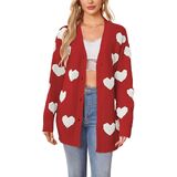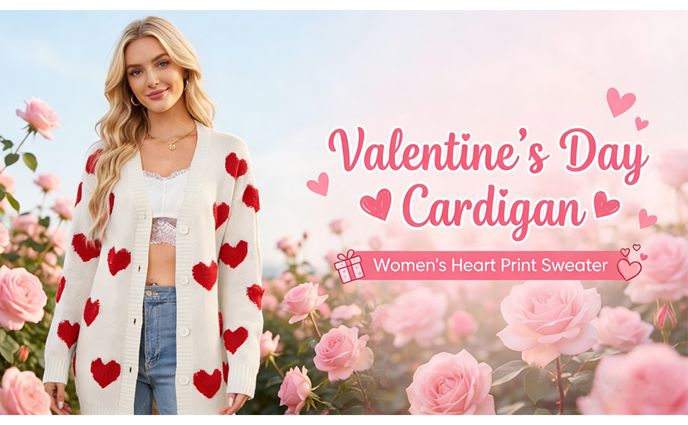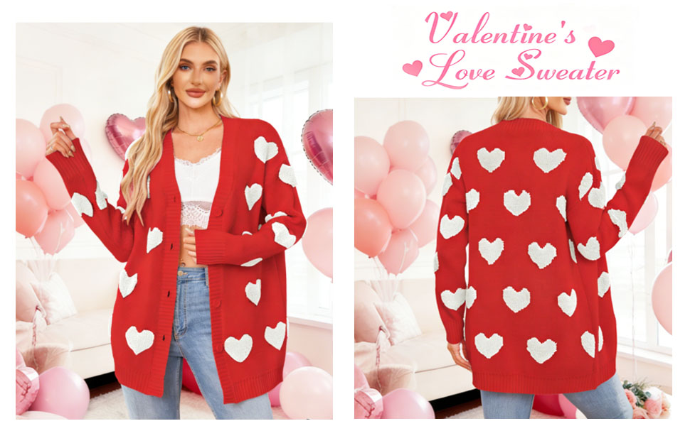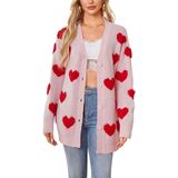 Features: Featuring a cute heart pattern, this cardigan sweater has a classic button - front closure and a V - neckline. The playful heart design adds a sweet, trendy touch, making it an ideal choice for Valentine's Day or daily casual looks