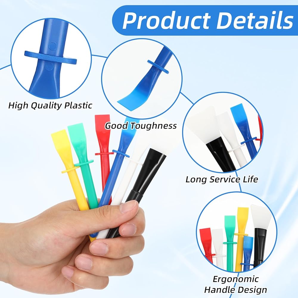 【Easy To Use】 These palette scrapers adopt a user-friendly design, you can grip them firmly to mix pigments or scrape materials smoothly, the silicone spreaders are ideal for quick handmade projects and art class creation.
