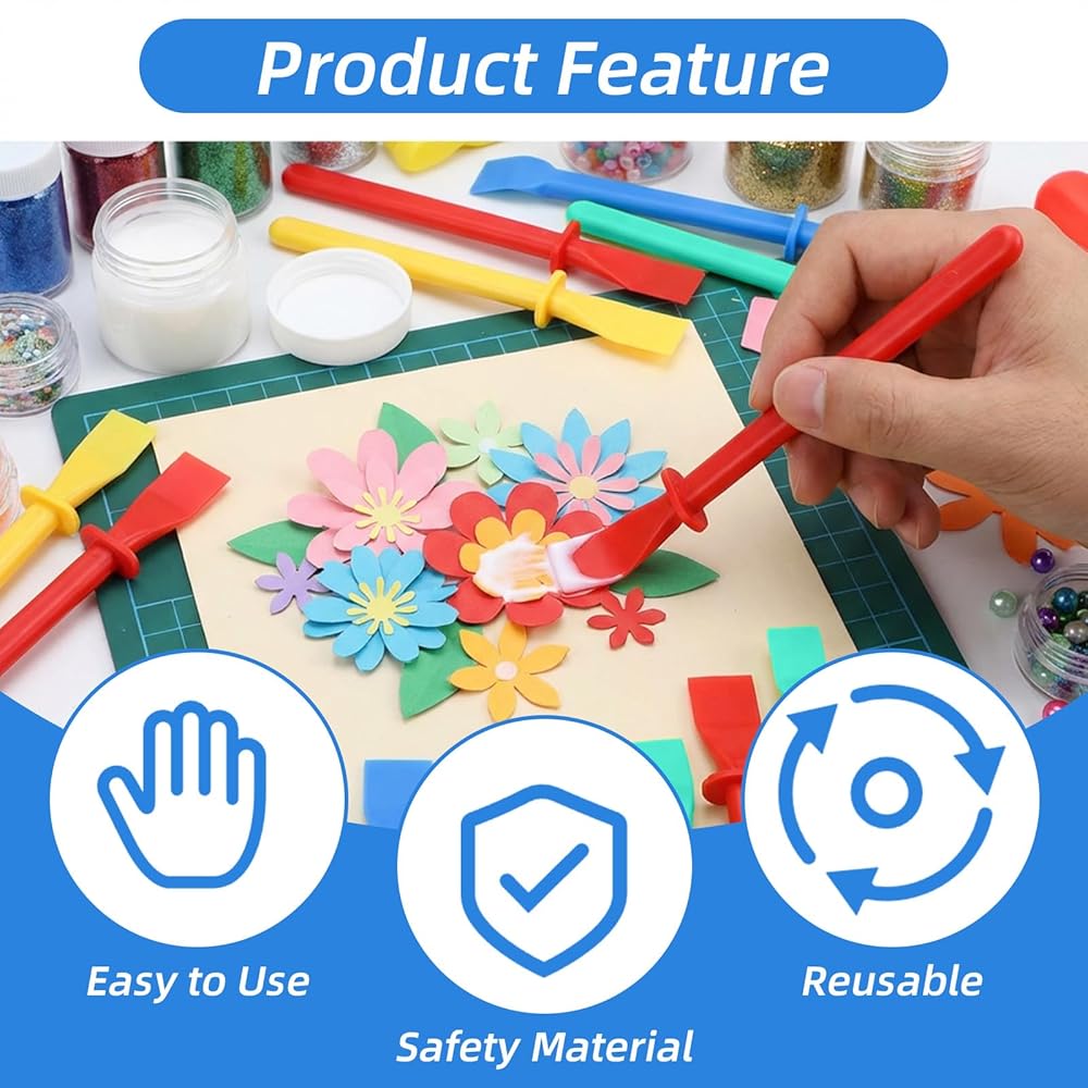 【Package Included】 The package contains 35 pieces of palette knives in total, with colors of black, red, green, blue, white, and yellow. You can use them for various crafting needs or share them with art lovers. The portable glue applicators are ideal for bulk use in art workshops or school art classes.
