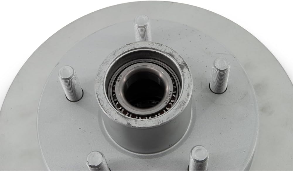 This is a replacement Integral-Style Trailer Disc Brake Rotor, Meaning that the Trailer Hub and Brake Rotor are made as one single piece. The Integral Rotor features six 1/2" diameter studs, in the standard 5 on 4.5" bolt spacing pattern, and comes with the Grease Seal and read bearing Pre-installed. The Front Bearing, Spindle Hardware, and Dust Cap are also included with this Replacement Trailer Disc Brake Rotor kit. The Bearing Sizes that are included with this Rotor are Inner Bearing 68149 (1 3/8" inner diameter) and Outer Bearing Number 44648 (1 1/16" inner diameter). The Grease Seal Measures 1.719 inches inner diameter. This Bearing and Seal Size Combination is common on a lot of trailers, but it is not the only bearing and seal size combination for 5 Lug Trailers, so be sure to double check your trailer's bearing and seal sizes first to make sure this will work as a suitable replacement prior to purchasing.
