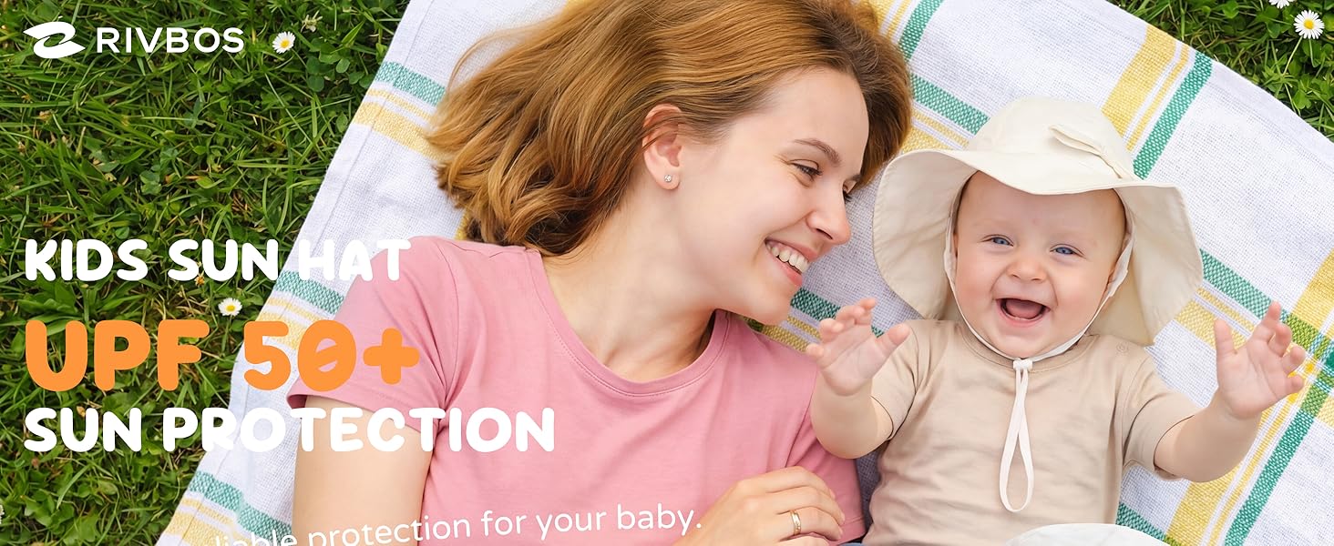 【Material】RIVBOS Toddler sun hat made of high quality skin-friendly polyester.Keep your child's delicate skin safe in the sun with RIVBOS's built-in UPF 50+ sun protection so there's more time for enjoying the beach, travelling, or other outdoor activities.