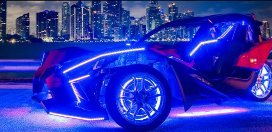 * placement on Vehicle: Underglow, Fender, Car, Truck, Slingshot, Polaris Slingshot, Underglow ligting strips, Cars trucks Door/Grill Lights, Universal fitments (Strips can cut to be shorter), Motorcycle, Interior Decoration, Hood lights, Underbody, Wheel
